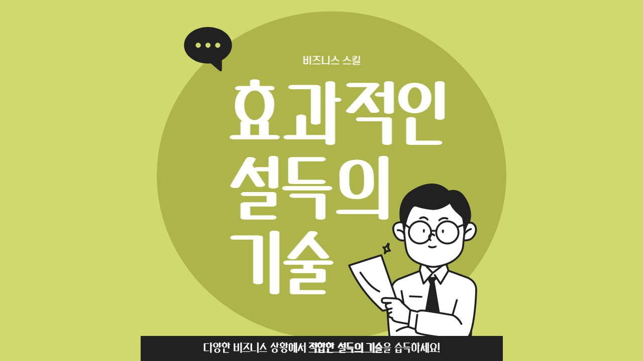 l 업무 보고/지시, 회의, 제안, 발표, 면담 등 다양한 비즈니스 상황에서 적합한 설득의 기술을 습득하여 원하는 성과를 도출할 수 있습니다.