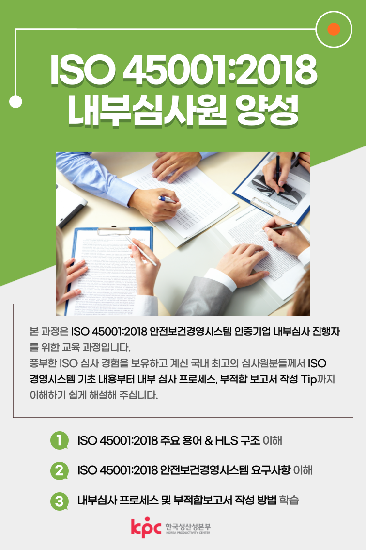 1일차 | ㅇ 경영시스템 및 심사 개요 - 경영시스템 이해 - 심사 및 인증제도 이해 ㅇ ISO 45001:2018 개요 - ISO 45001:2018 표준의 목적 및 기본 개념 - 안전보건경영시스템 용어 정의 - HLS & 리스크/기회 평가, 프로세스 접근방식 ㅇ ISO 45001:2018 이해/실습 - ISO 45001:2018 표준 요구사항 이해 - ISO 45001:2018 표준 요구사항 실습(시나리오) | |