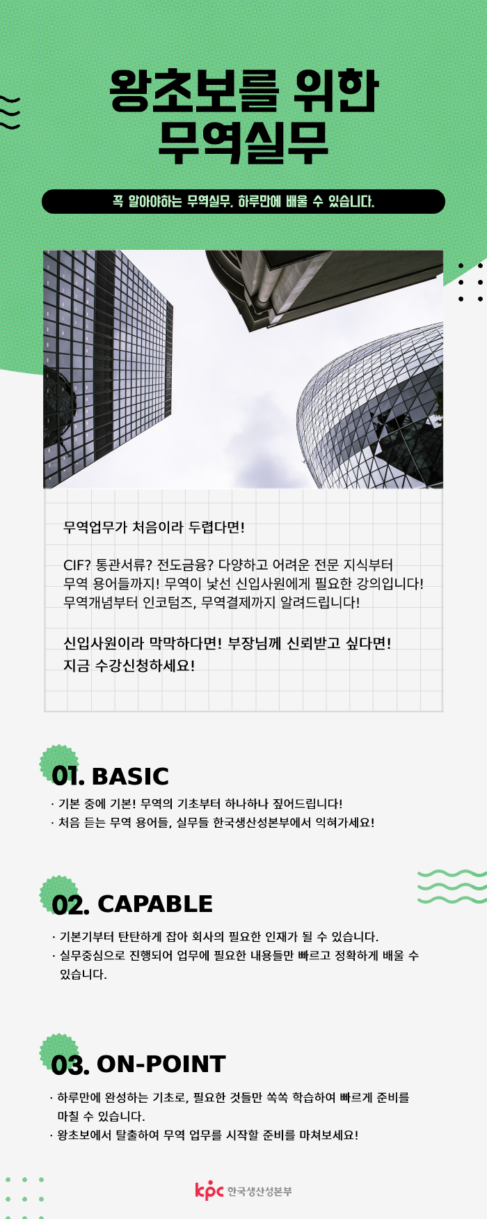 | 교육장소 | 한국생산성본부 3층 301호 |